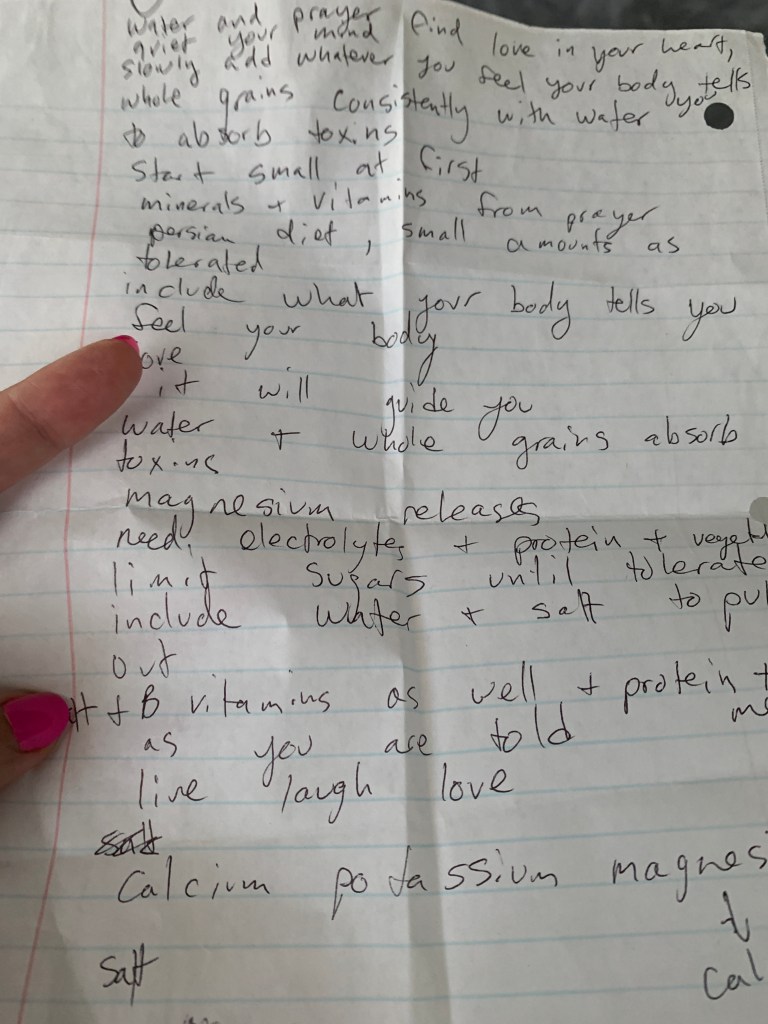 Tucked inside that book my own ramblings from when he told me to withdraw from my medication and I was at his house and in active withdrawal and psychosis. From a time where I did not eat for a week and he told me I “wouldn’t die from a tummy ache”